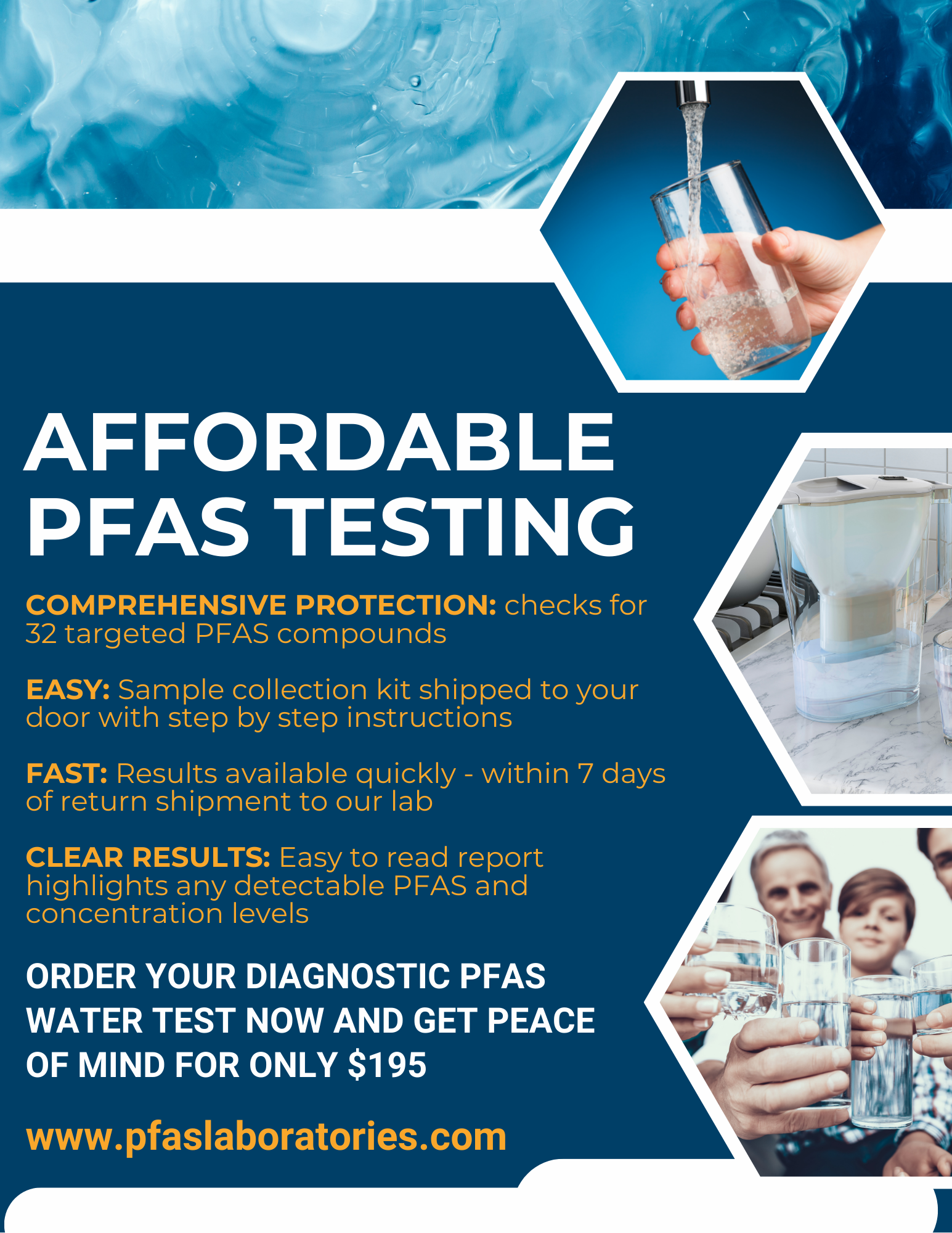 Examples include well water, groundwater, milk, waste water, effluent and landfill leachate. This method returns results for 30 PFAS compounds including the Maine 6.